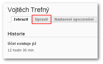 Zobrazí se vám stránka s informacemi o vašem účtu, zde přejděte na kartu Upravit.